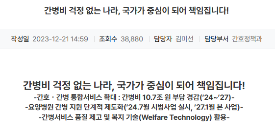 - 장기요양 인정 시 일당형 지급