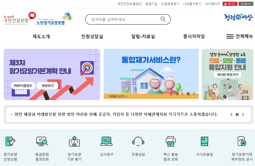 - 노인장기요양보험 홈페이지 바로가기 및 빠른 접속법
