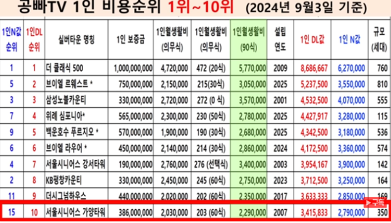 - 지역별 실버타운 비용 차이
