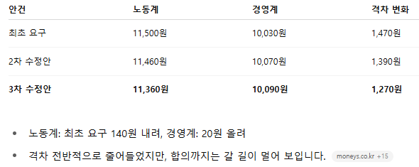 내년도 최저임금 3차 수정안 발표, 노동계 11,360원 vs 경영계 10,090원으로 격차 1,470원→1,270원 축소. 이번 회의 핵심 논의 포인트와 향후 전망 분석.