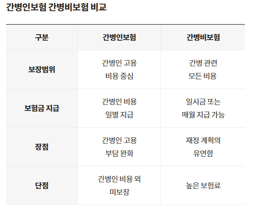 - 보험금은 간병인 고용비 실비 또는 정액 지급 방식