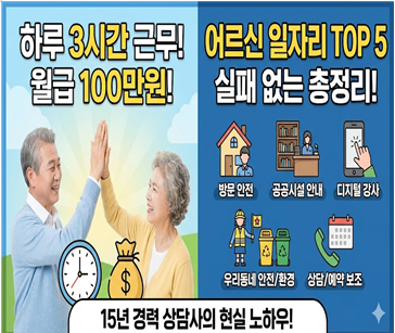 여러분의 안정적이고 활기찬 노후는 **'작은 움직임'**에서 시작됩니다. 15년 경력의 박준호 상담사의 유투브 하루 3시간 근무로 월급 100만원 가능한 어르신 일자리 TOP 5 총정리를 정리한 내용입니다
