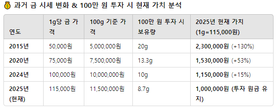 👉 장기 보유할수록 금값 상승 효과를 더 크게 누릴 수 있음