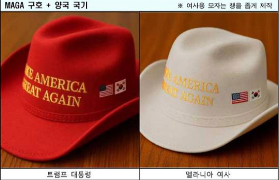 또한 트럼프 부인 멜라니아 여사에게는 특별 제작된 모자도 함께 전달됐습니다.