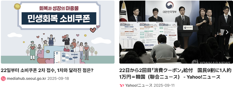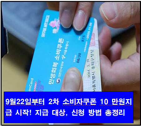 2025년 9월 22일부터 대한민국 정부는 2차 민생회복 소비쿠폰 지급을 시작하여, 가구 합산 소득 하위 90%에 해당하는 국민에게 1인당 10만 원을 추가로 지급합니다.
